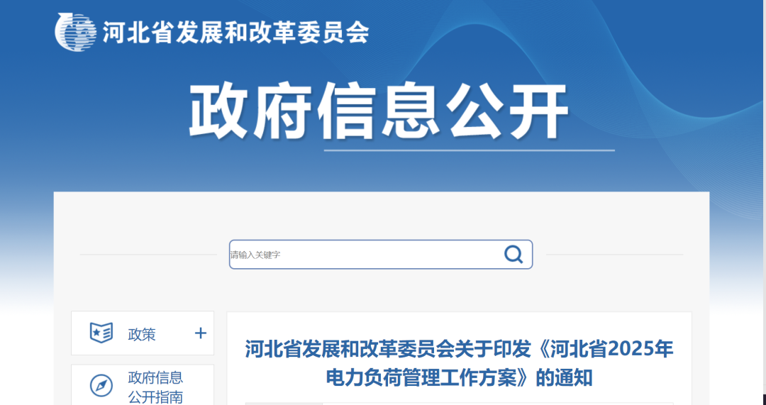 河北省发展和改革委员会发布关于印发《河北省2025年电力负荷管理工作方案》的通知