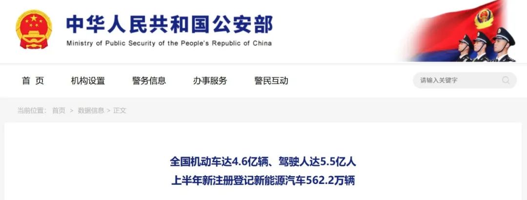 据公安部统计,截至今年6月底,全国机动车保有量达4.6亿辆,其中汽车3.59亿辆;机动车驾驶人5.5亿人,其中汽车驾驶人5.15亿人。2025年上半年全国新注册登记机动车1688万辆,新领证驾驶人1258万人。