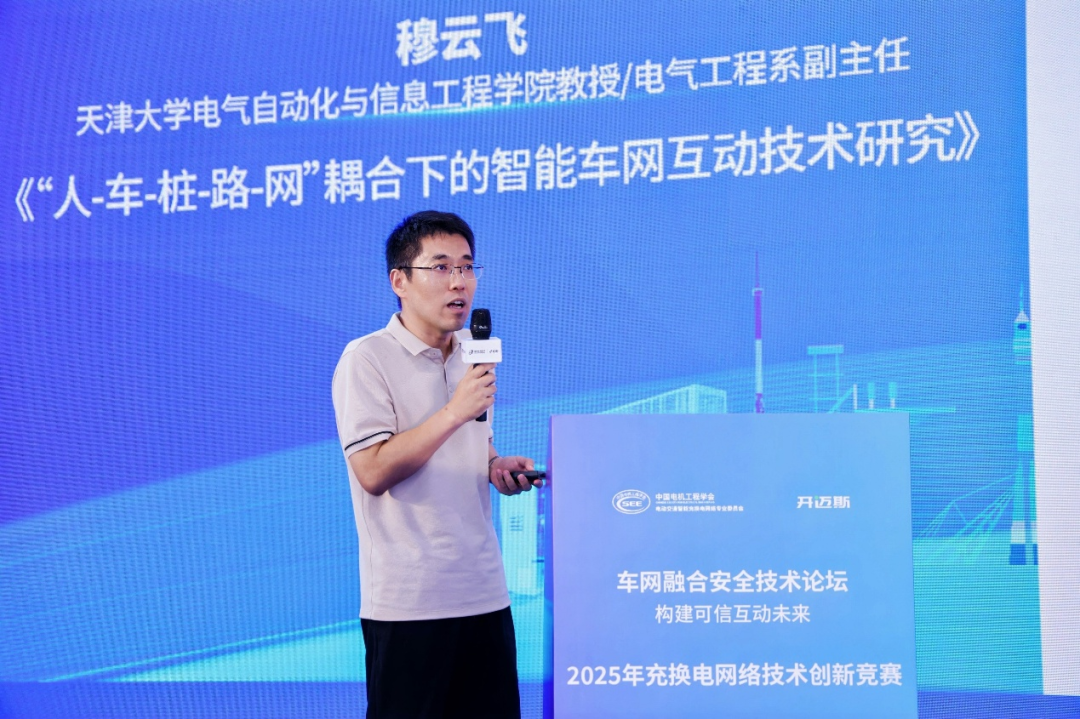 天津大学电气自动化与信息工程学院电气工程系副主任穆云飞教授则在《“人-车-桩-路-网”耦合下的智能车网互动技术研究》的报告中探讨了多流耦合优化及调控资源能力的释放,介绍了团队在充电负荷预测、充电设施友好接入、多网络耦合优化等方面的研究成果。